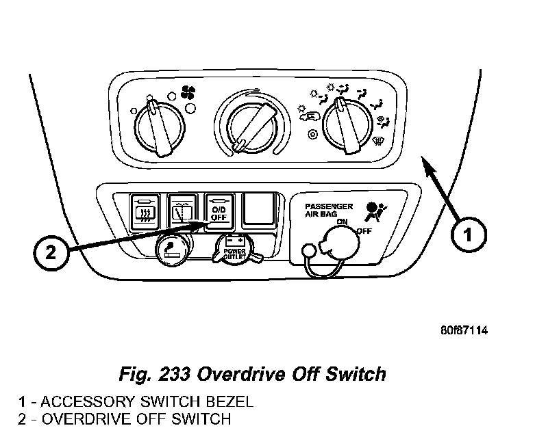 2. Remove the overdrive off switch from the accessory switch bezel.