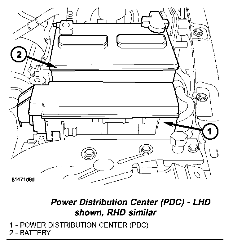 Power Distribution Center (PDC) - LHD Shown, RHD Similar: