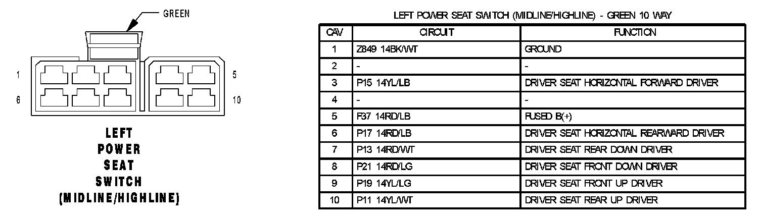 Left Power Seat Switch (Midline/Highline):