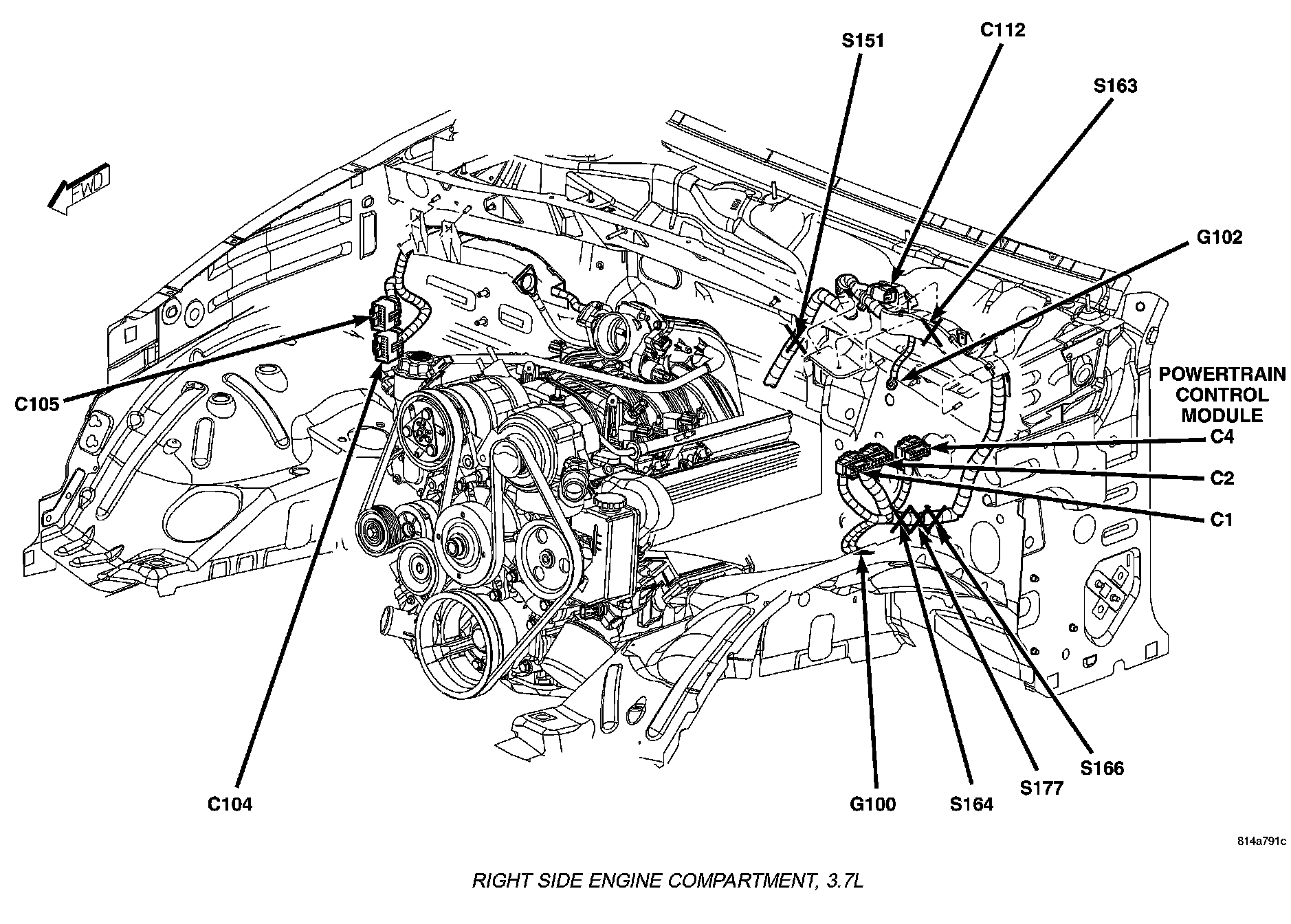 Right Side Engine Compartment, 3.7L: