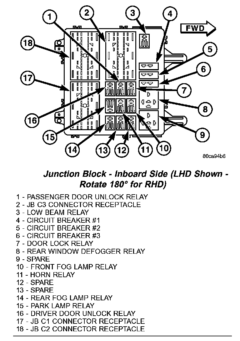 Junction Block - Inboard Side (LHD Shown - Rotate 180 Degree For RHD):