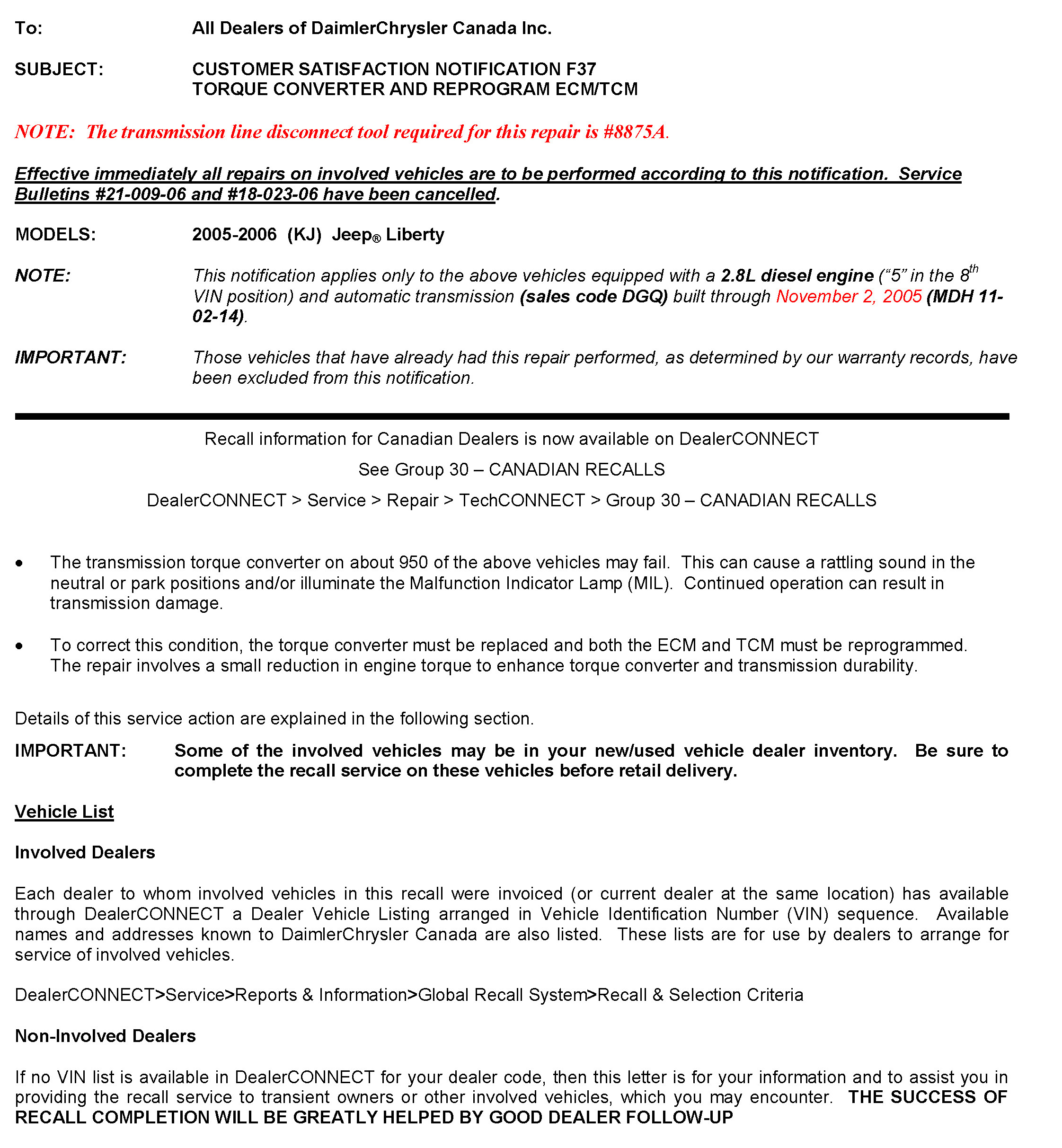 Canada - Campaign - F37 Torque Converter/Reprogram ECM/TCM