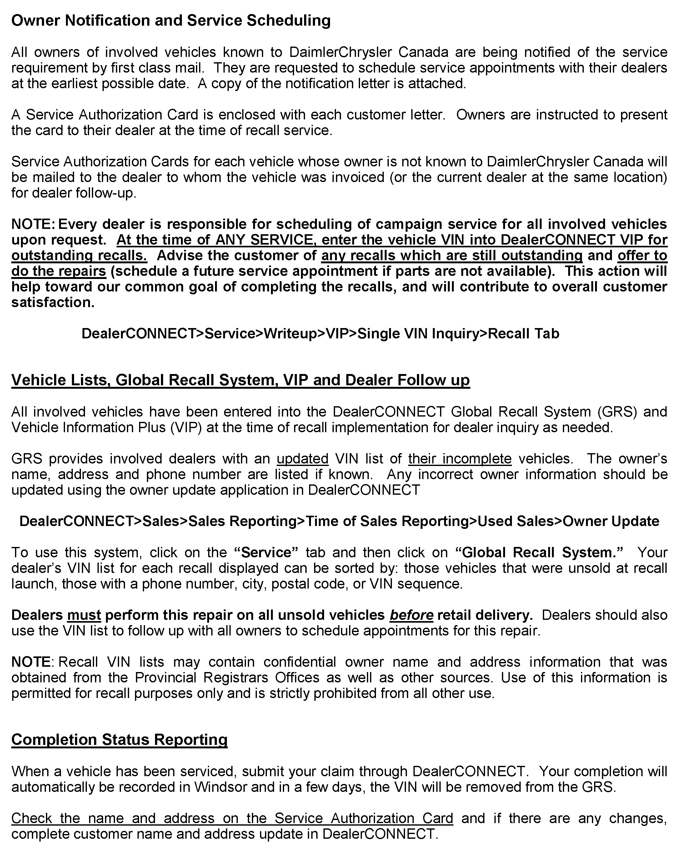 Technical Service Bulletins