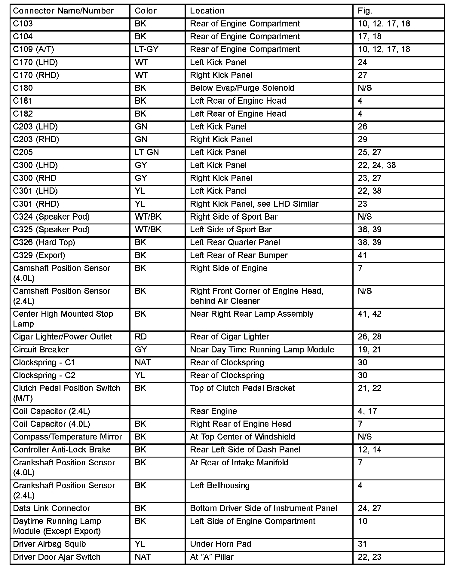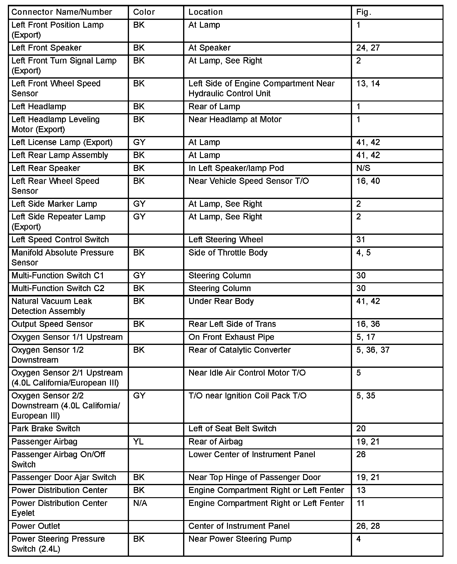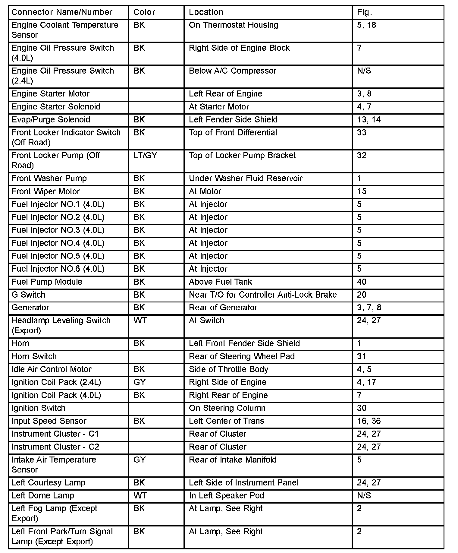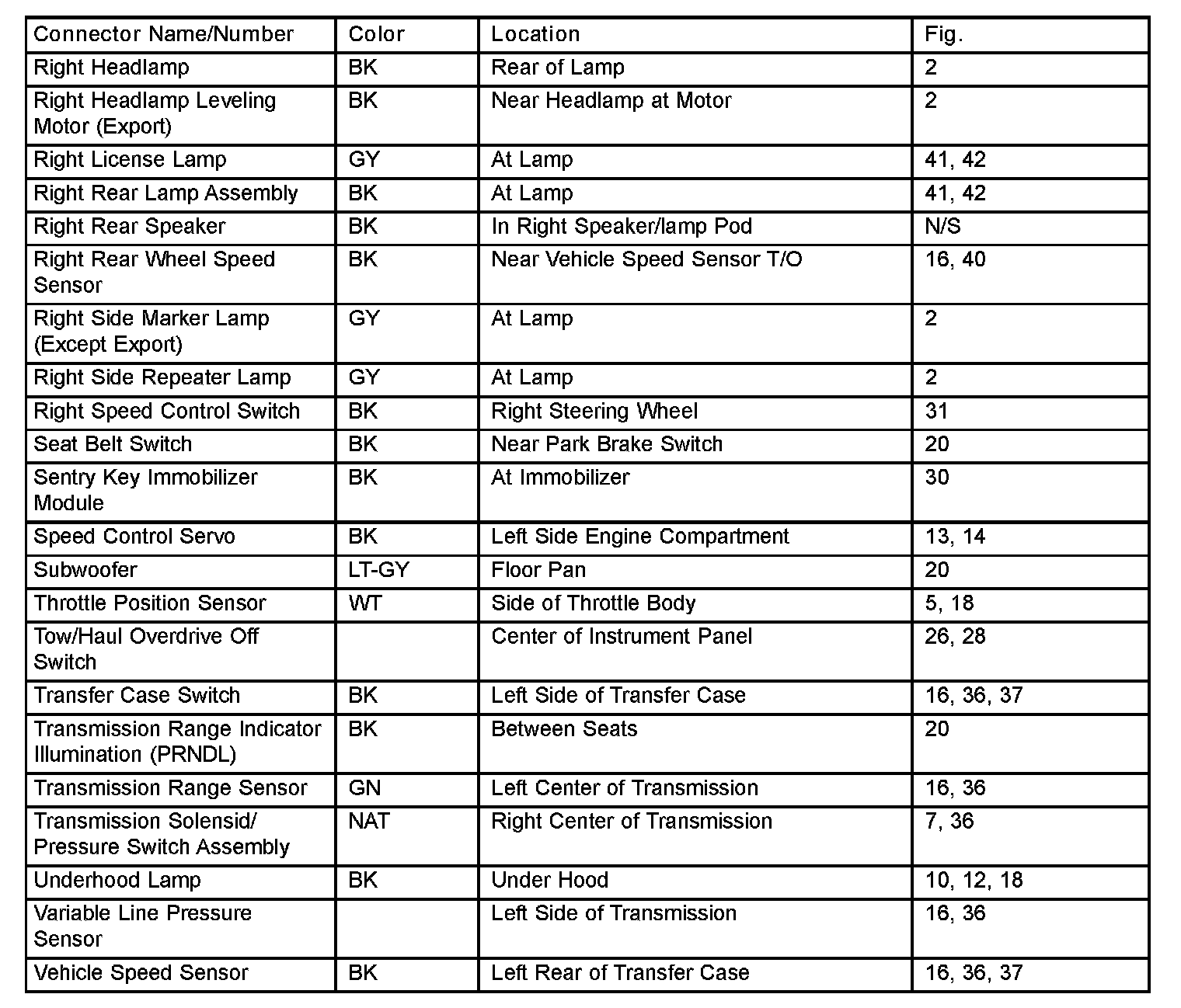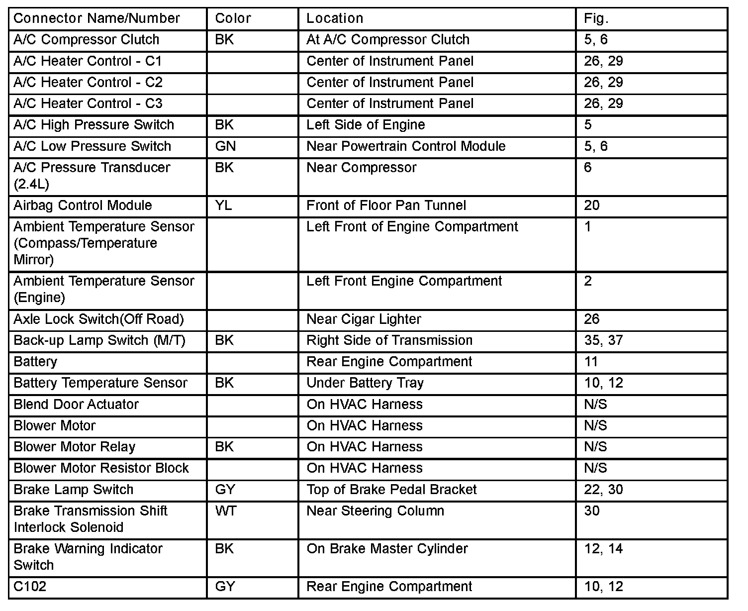 If a link on the index chart to a figure is not provided, that means that the connector and/or figure in question does NOT apply to the vehicle model selected.