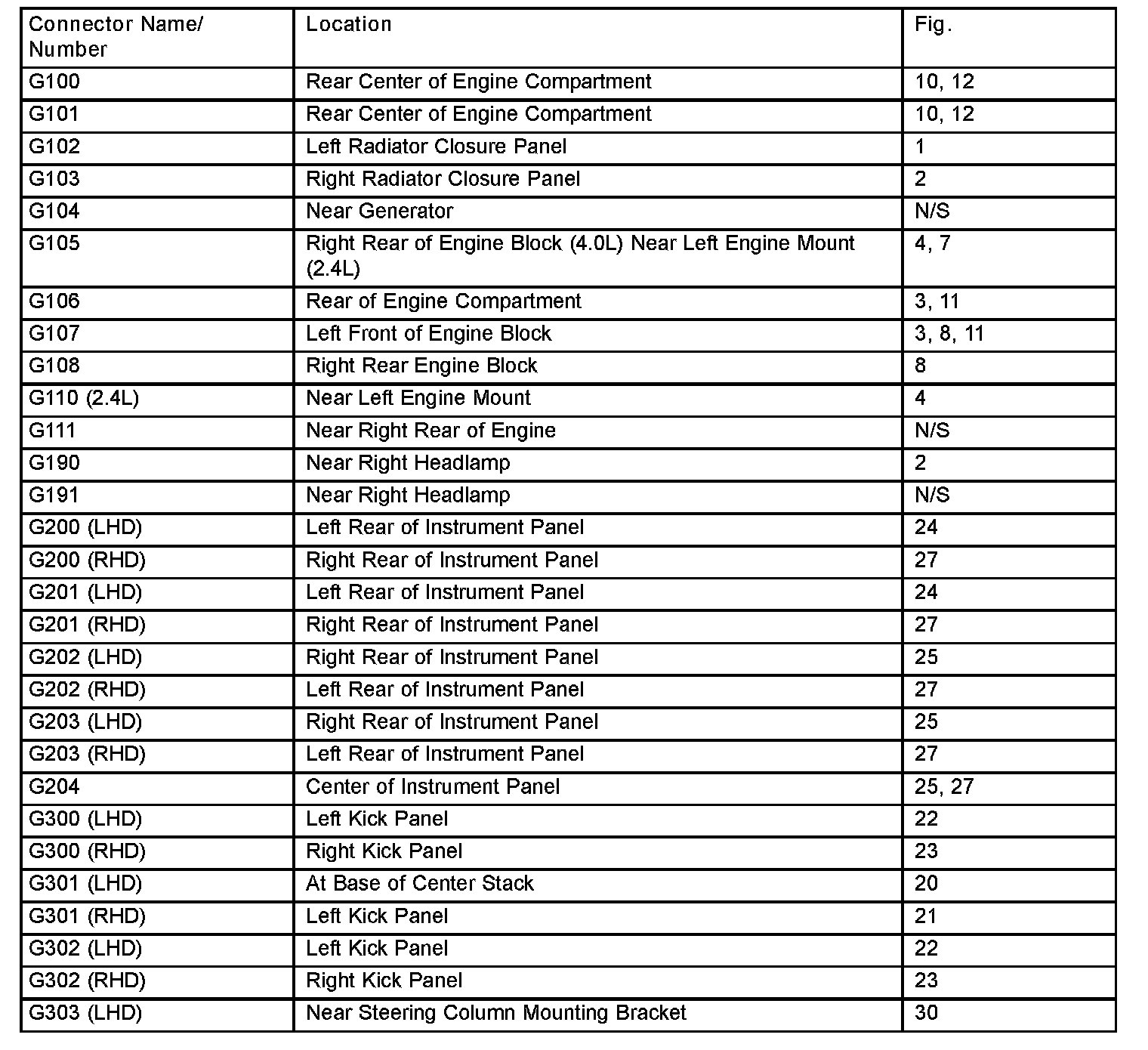 If a link on the index chart to a figure is not provided, that means that the connector and/or figure in question does NOT apply to the vehicle model selected.