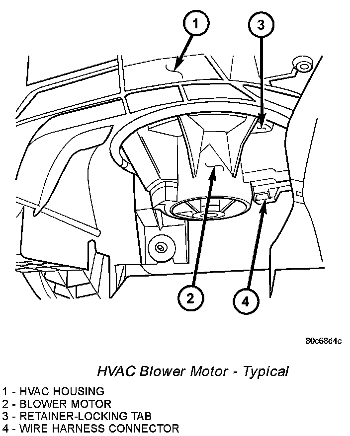 The blower motor is located on the passenger side of the vehicle under the dash. The blower motor can be removed from the vehicle without having to remove the HVAC housing.