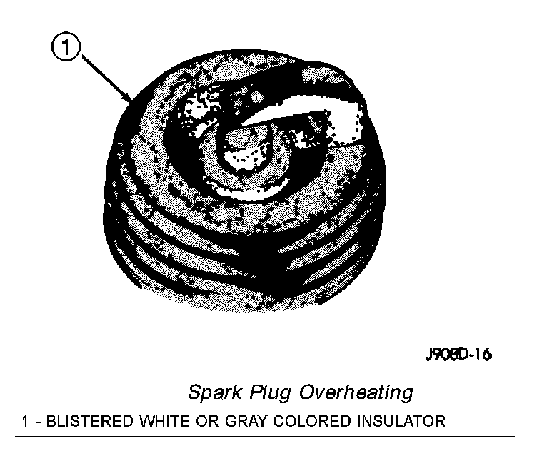Overheating is indicated by a white or gray center electrode insulator that also appears blistered. The increase in electrode gap will be considerably in excess of 0.001 inch per 2000 miles of operation. This suggests that a plug with a cooler heat range rating should be used. Over advanced ignition timing, detonation and cooling system malfunctions can also cause spark plug overheating.