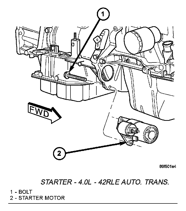 5. 4.0L With 42 RLE Automatic Transmission: Remove 2 starter mounting bolts.