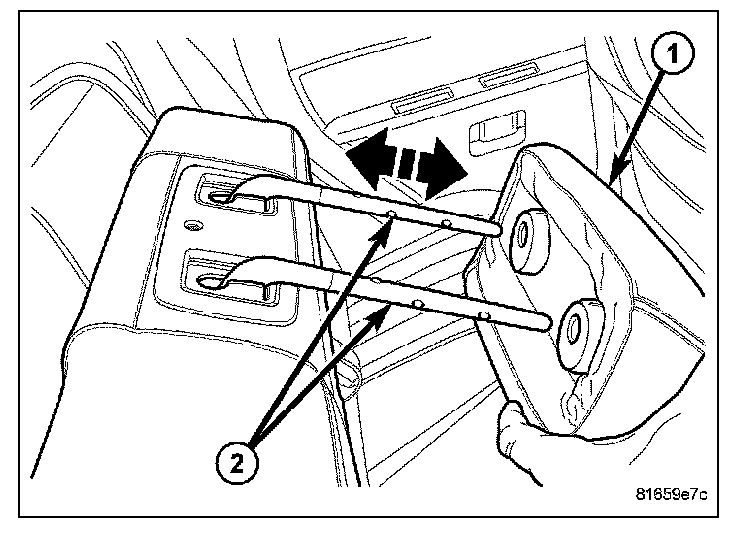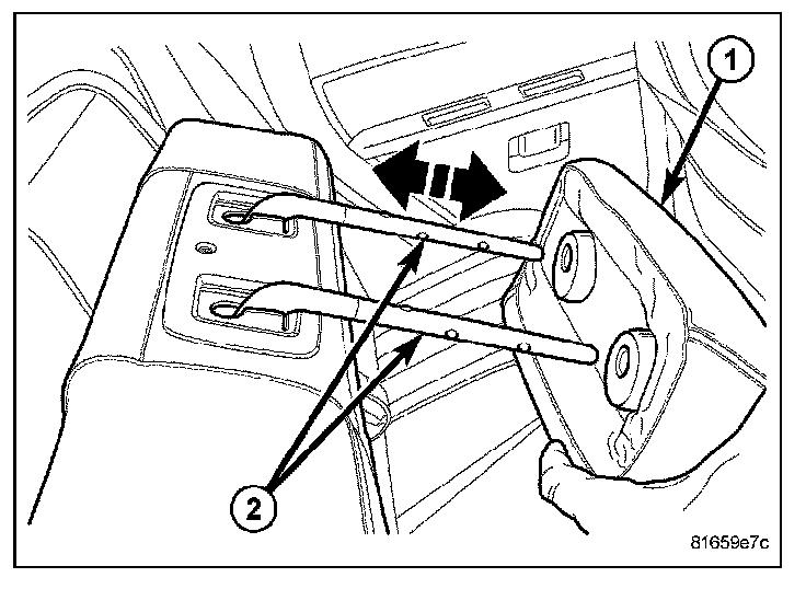 1. Position the headrest (1) onto the bracket and hinge assembly (2) and seat the headrest fully.