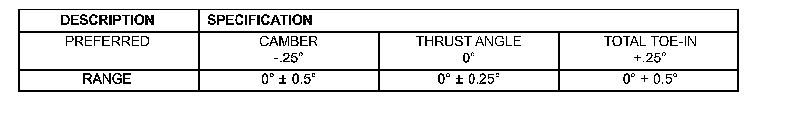 Specifications are in degrees.