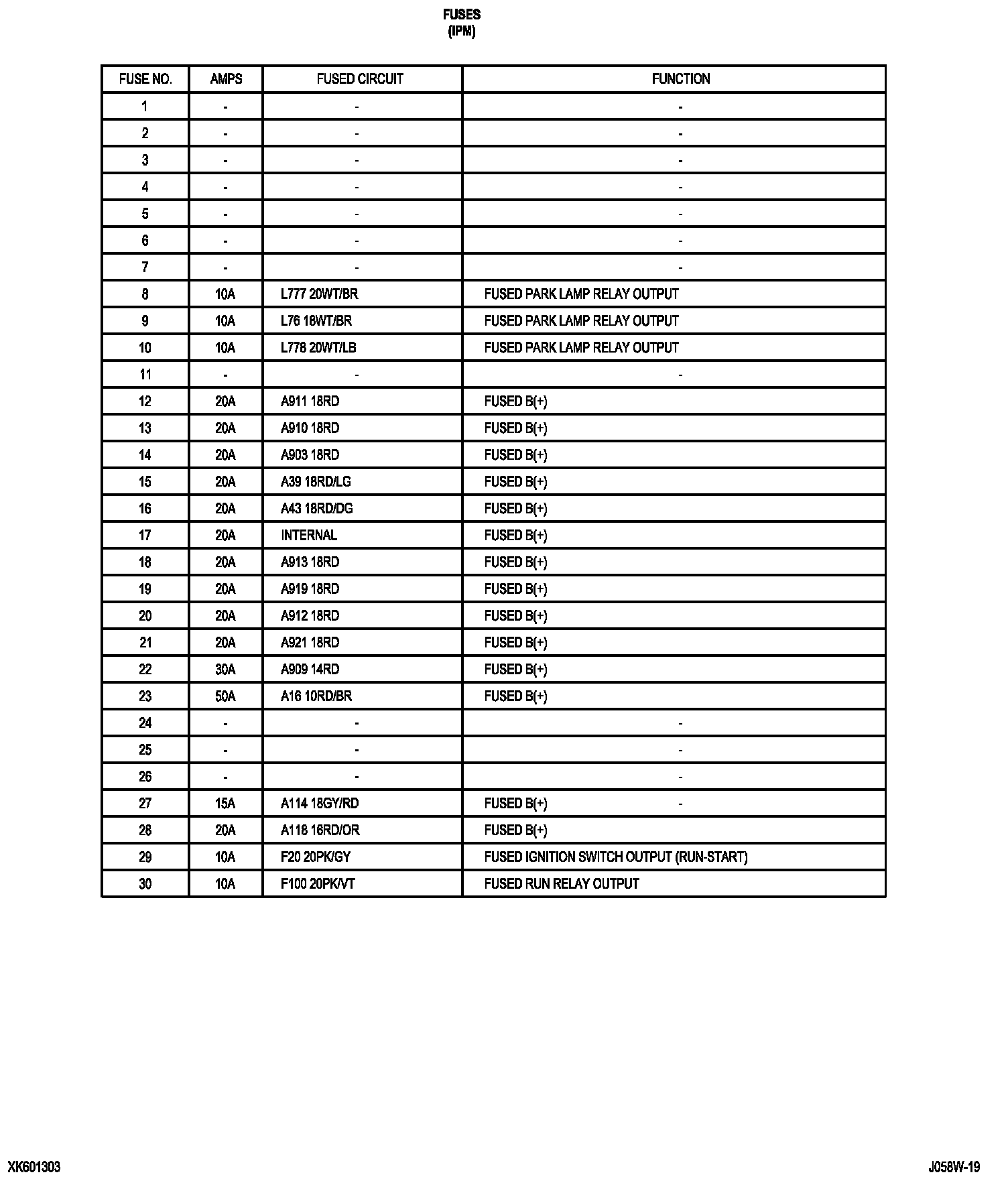 Fuse Information Table (Fuse 1 - Fuse 30):