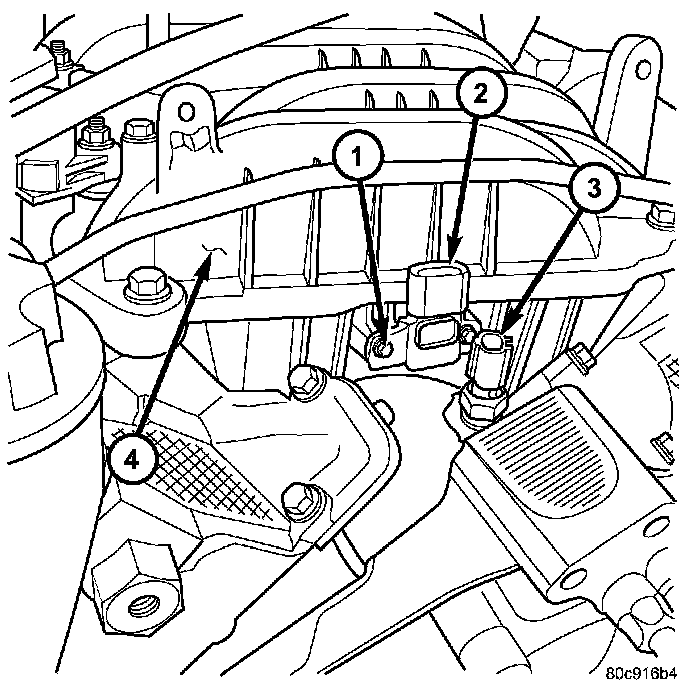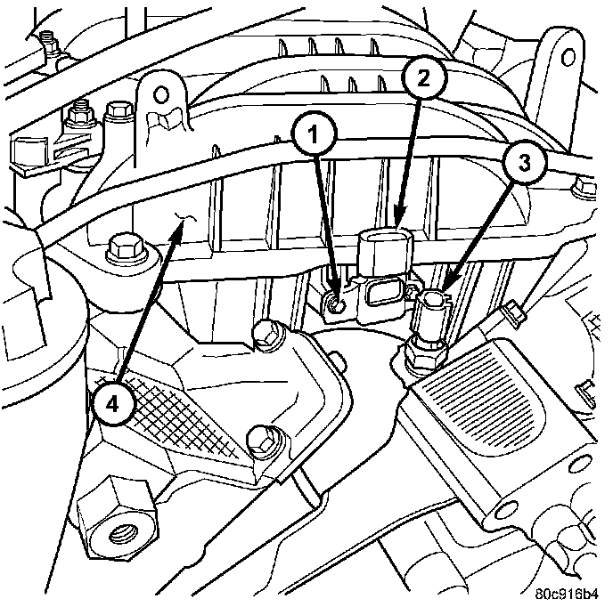 The Engine Coolant Temperature (ECT) sensor on the 3.7L engine is installed into a water jacket at front of intake manifold near rear of generator.