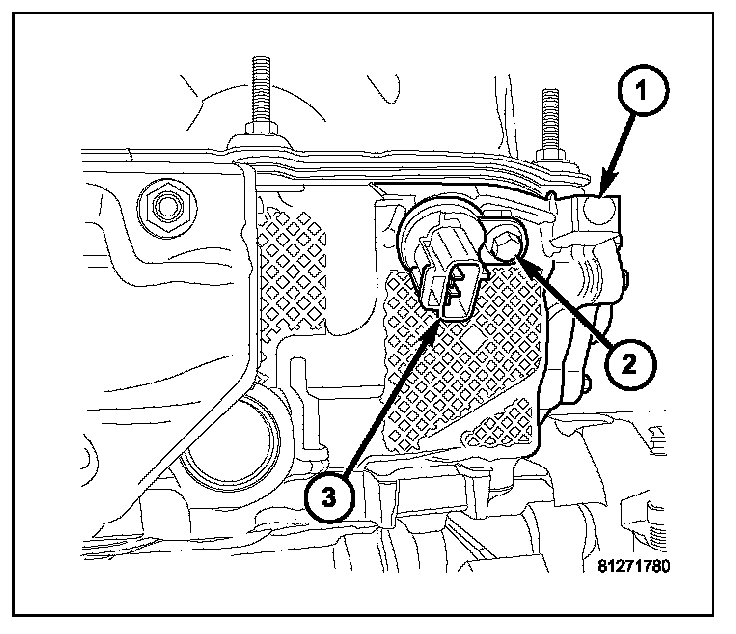 3. Install sensor (3) into cylinder head (1) with a slight rocking and twisting action.