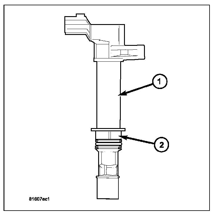 The 3.7L engine uses 6 dedicated, and individually fired coils (1) for each spark plug.