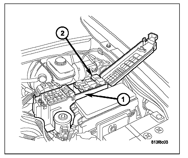 2. Open the cover of the power distribution center (PDC) (1) located in the engine compartment.