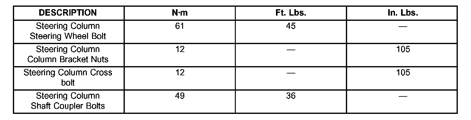 Steering Column: Specifications