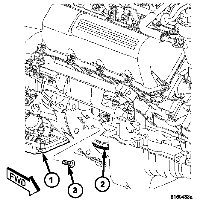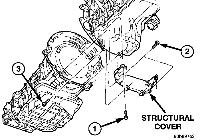 6. Remove the bolts (1, 2, 3) holding the structural cover to the transmission and engine.