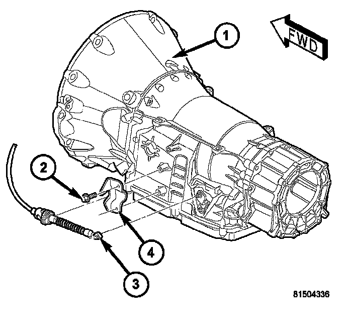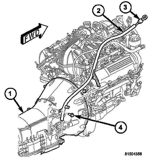 15. Remove the bolts (4) holding the transmission fill tube (2) to the transmission (1).
