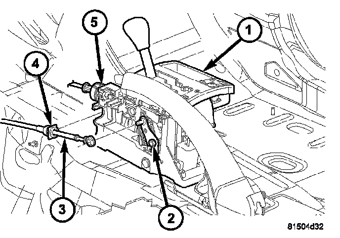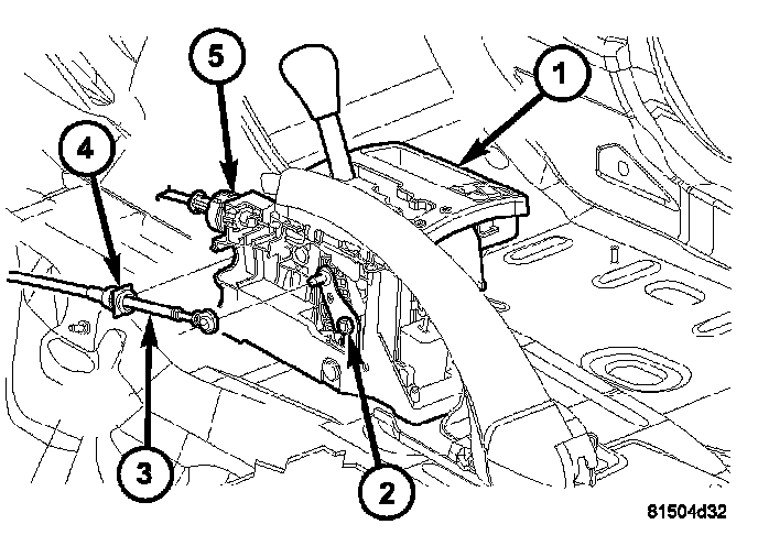 5. Remove the floor console as necessary to access the shift mechanism and cables.