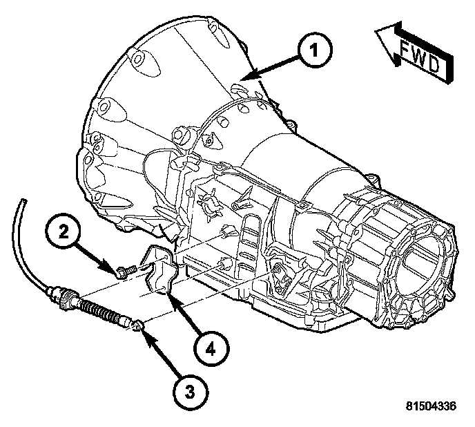 3. Disengage the gearshift cable (3) eyelet at transmission manual shift lever and pull cable out of the mounting bracket (4).