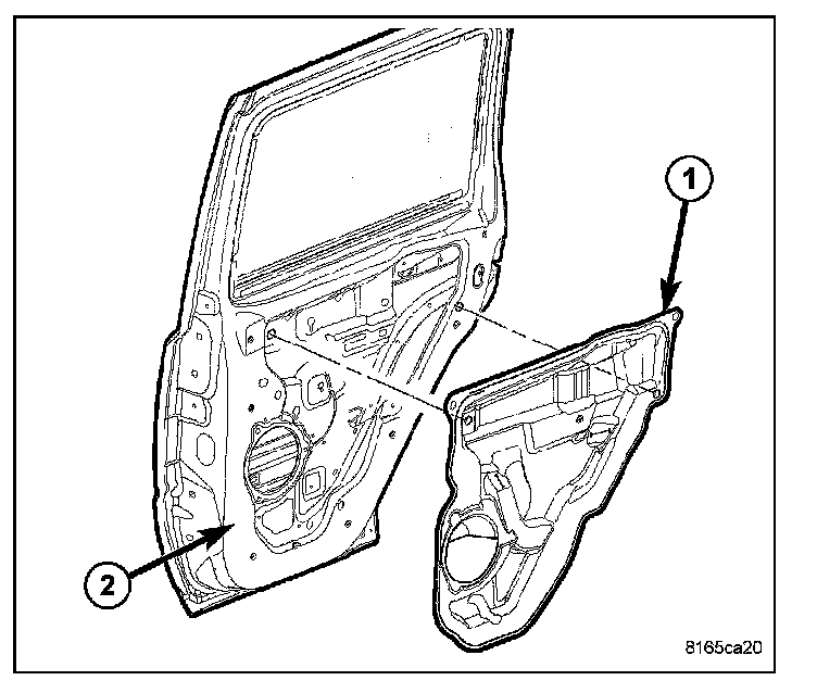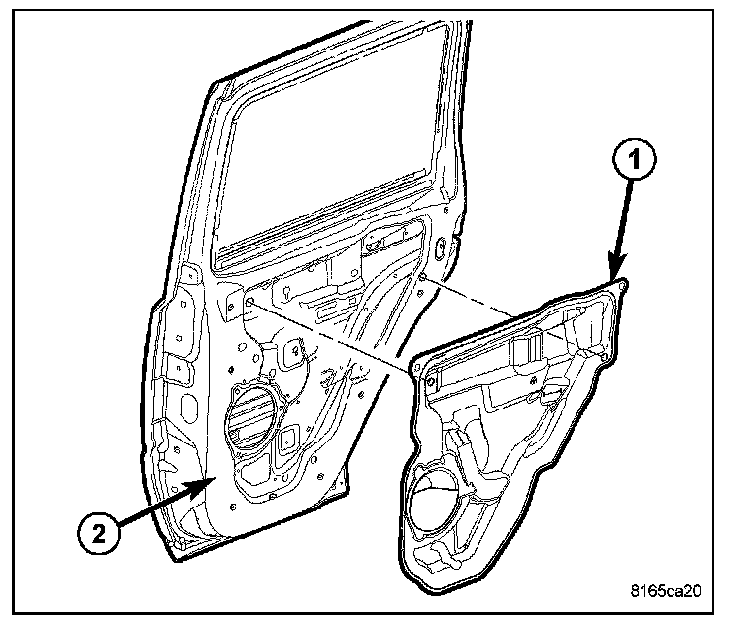 1. Remove the watershield from the inside of the rear door. Refer to Rear Door Panel.