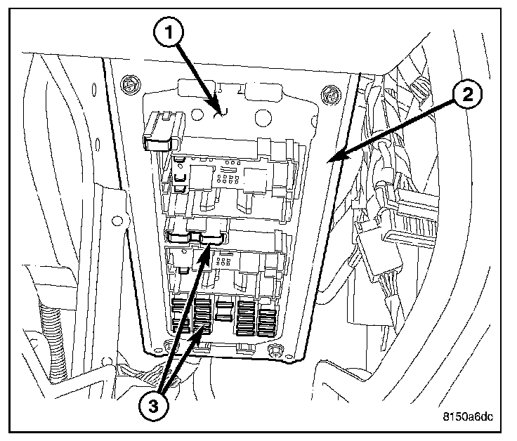 The rear wiper relay is an International Standards Organization (ISO) relay. Relays conforming to the ISO specifications have common physical dimensions, current capacities, terminal patterns, and terminal functions. This relay is permanently soldered onto the electronic circuit board of the Junction Block (JB) (1) located underneath the driver side end of the instrument panel. The relay is connected to all of the required inputs and outputs through five terminals.