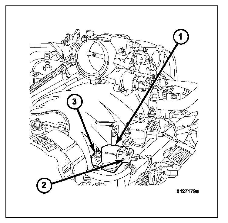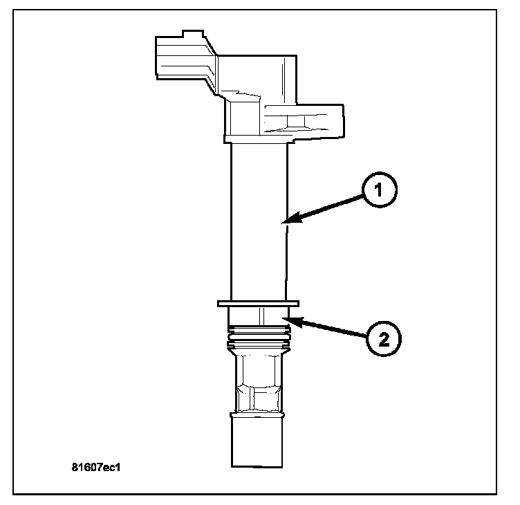 An individual ignition coil (1) is used for each spark plug. The coil fits into machined holes in the cylinder head. A mounting stud/nut (3) secures each coil to the top of the intake manifold. The bottom of the coil is equipped with a rubber boot to seal the spark plug to the coil. Inside each rubber boot is a spring. The spring is used for a mechanical contact between the coil and the top of the spark plug. These rubber boots and springs are a permanent part of the coil and are not serviced separately. An O-ring is used to seal the coil at the opening into the cylinder head.