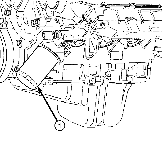 All engines are equipped with a high quality full-flow, disposable type oil filter (1). Daimler Chrysler Corporation recommends a Mopar or equivalent oil filter be used.