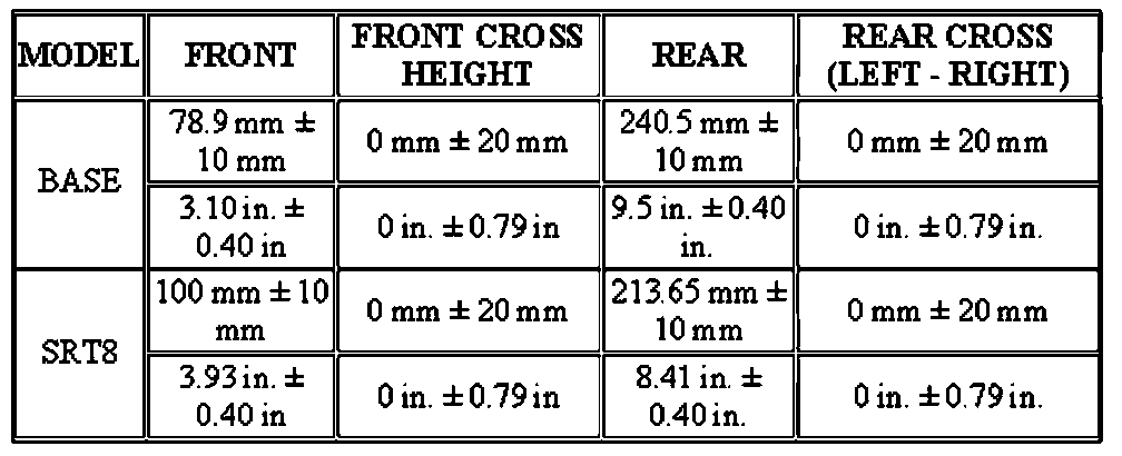 Vehicle height is to be checked with the vehicle on a flat, level surface, preferably a vehicle alignment rack. The tires are to be inflated to be recommended pressure. All tires are to be the same size as standard equipment. Vehicle height is checked with the fuel tank full of fuel, and no passenger or luggage compartment load.