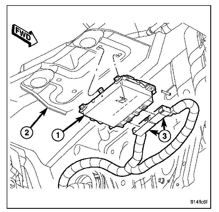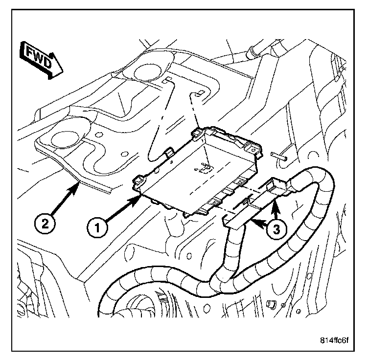 REMOVAL1. Locate the transmission control module on the dash panel, under the dash panel silencer pad (2), just to the right of the steering column.