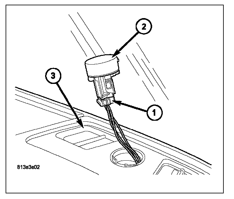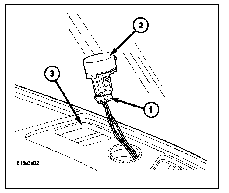 3. Carefully pull the sun sensor (2) partially out of the instrument panel (3) and disconnect the wire harness connector (1) from the sensor.