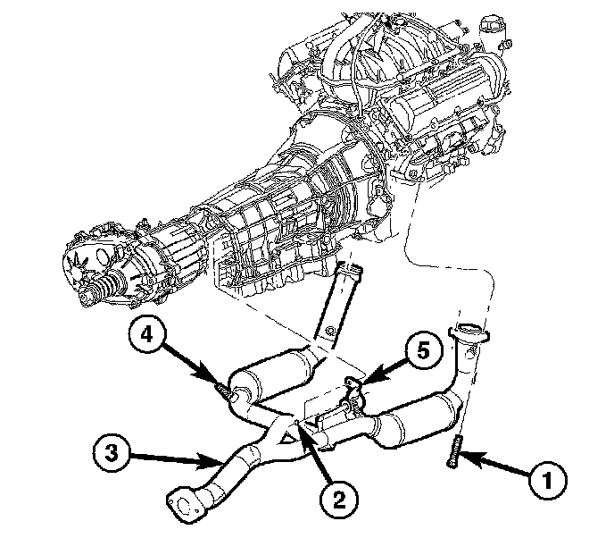 8. Remove the front exhaust pipe/catalytic converter assembly (3) from the vehicle.