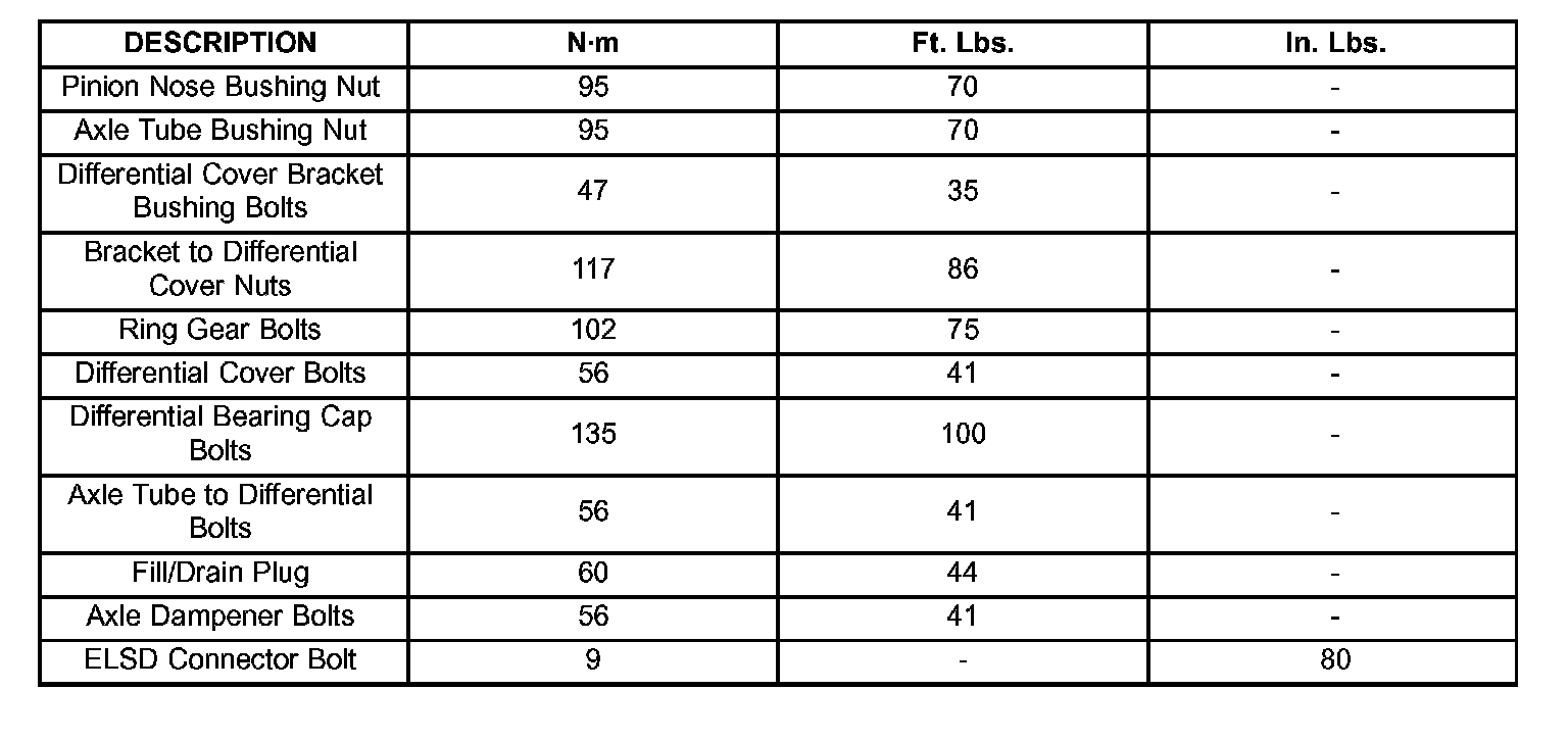 TORQUE SPECIFICATIONS: