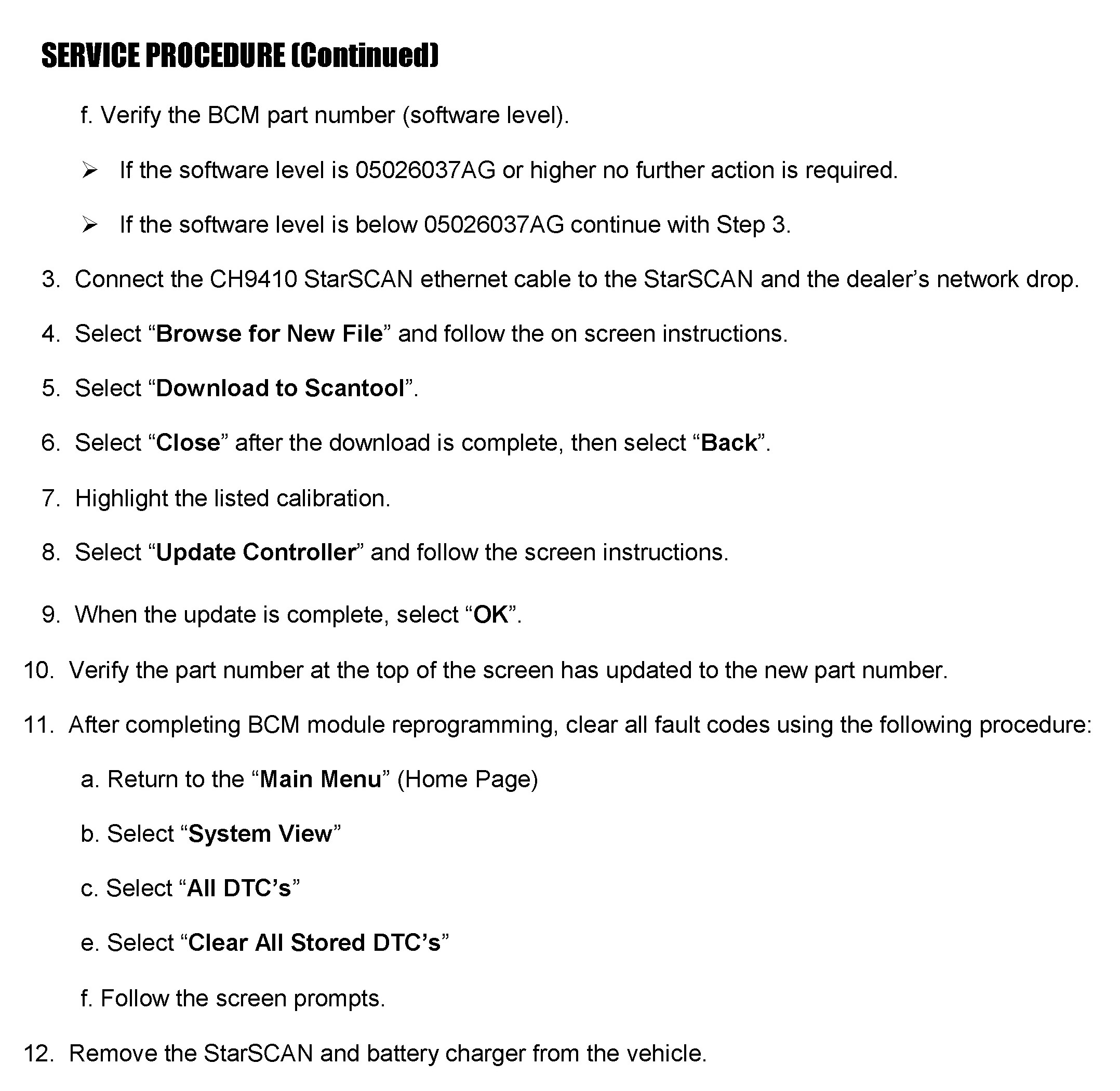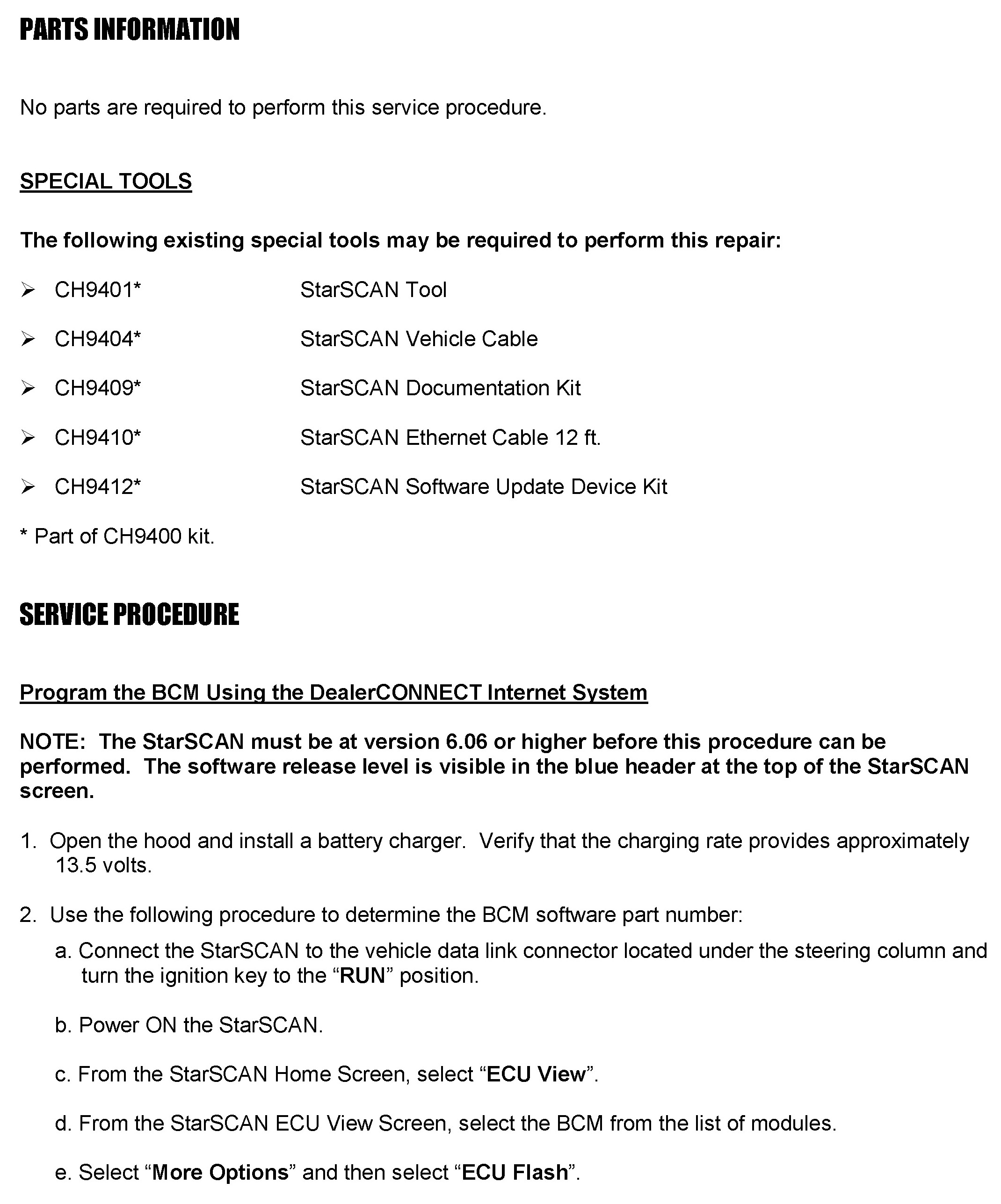 ^ To correct this condition, the BCM must be reprogrammed (Flashed).