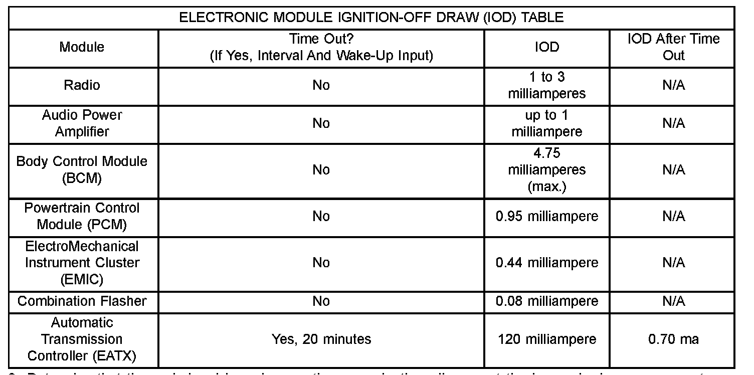 Electronic Module Ignition-Off Draw (IOD) Table: