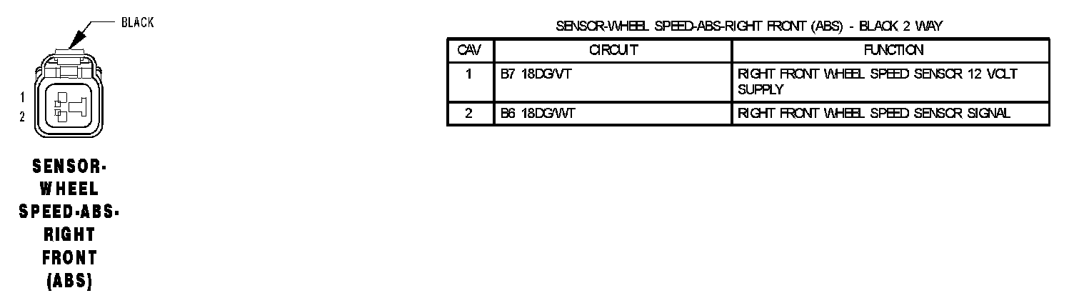 Sensor - Wheel Speed ABS Right Front (ABS):