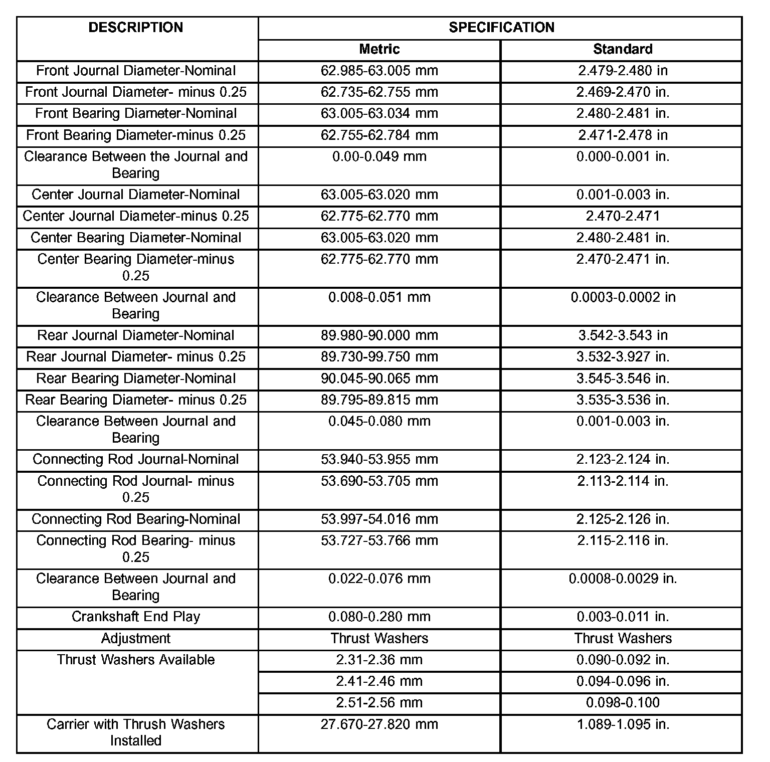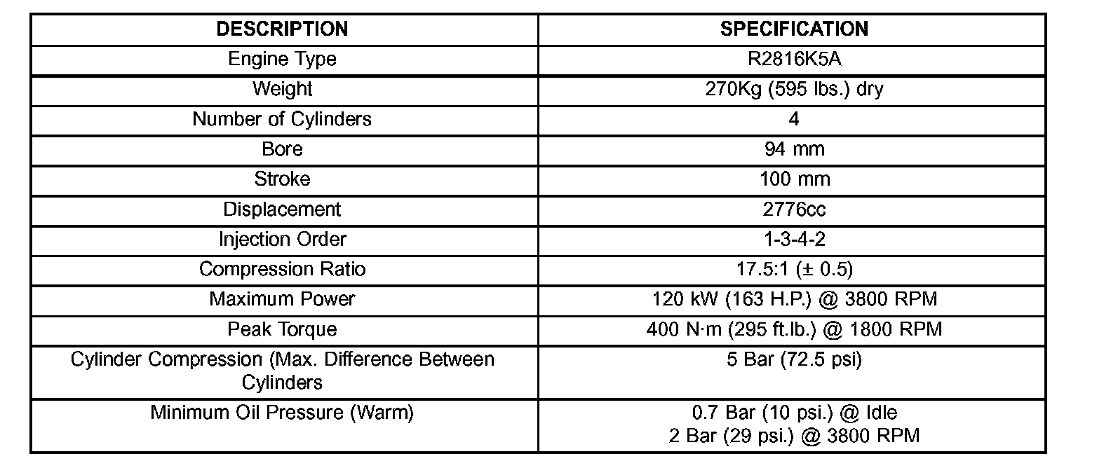 ENGINE SPECIFICATIONS