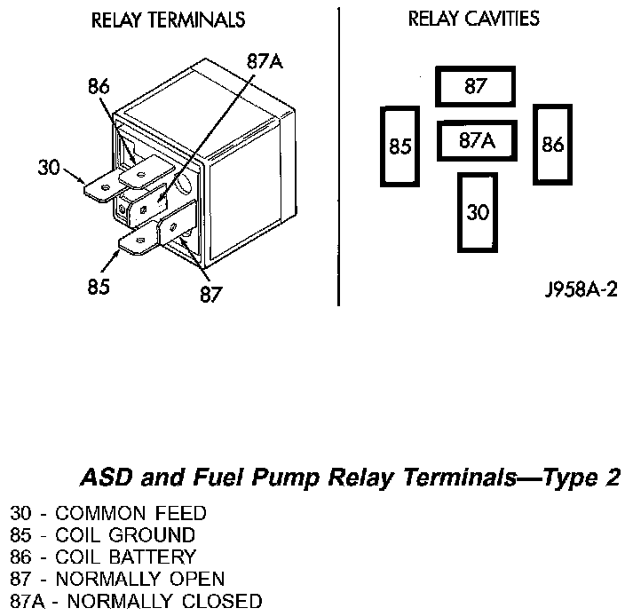 ASD AND FUEL PUMP RELAYSASD And Fuel Pump Relay Terminals-Type 1: