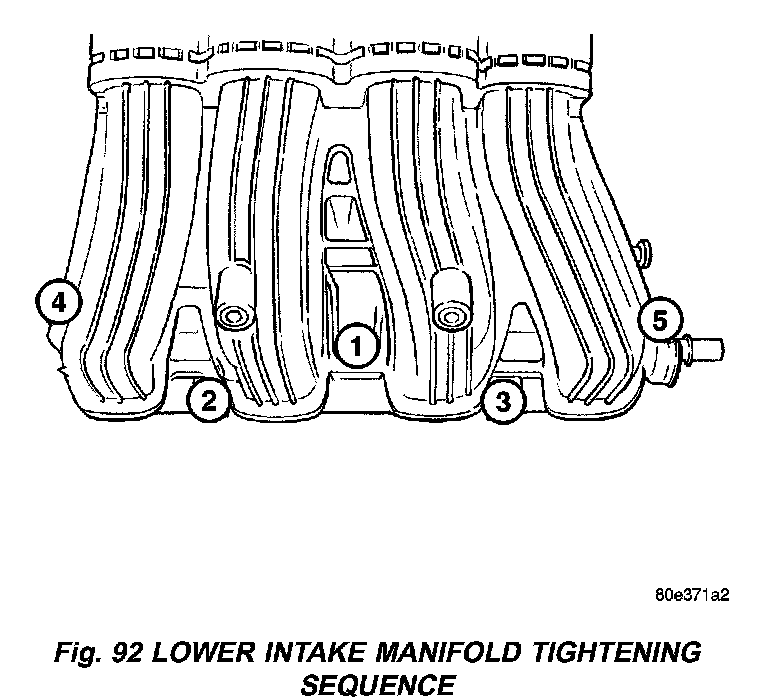 4. Install and tighten intake manifold fasteners to 28 Nm (250 inch lbs.) in the sequence shown (Fig. 92). Repeat procedure until all bolts are at specified torque.