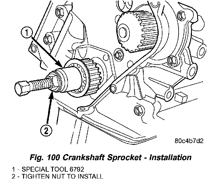 1. Install crankshaft sprocket using Special Tool 6792 (Fig. 100).