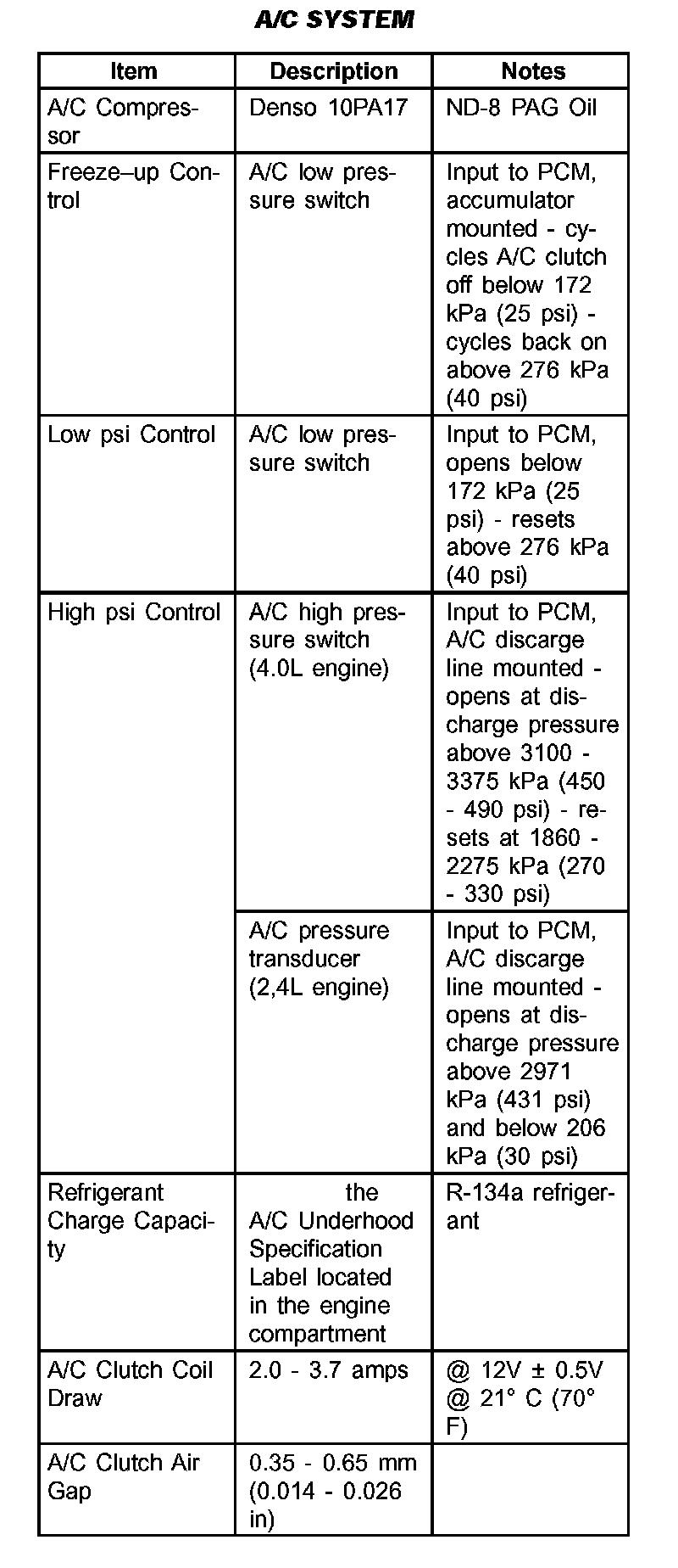 A/C System: