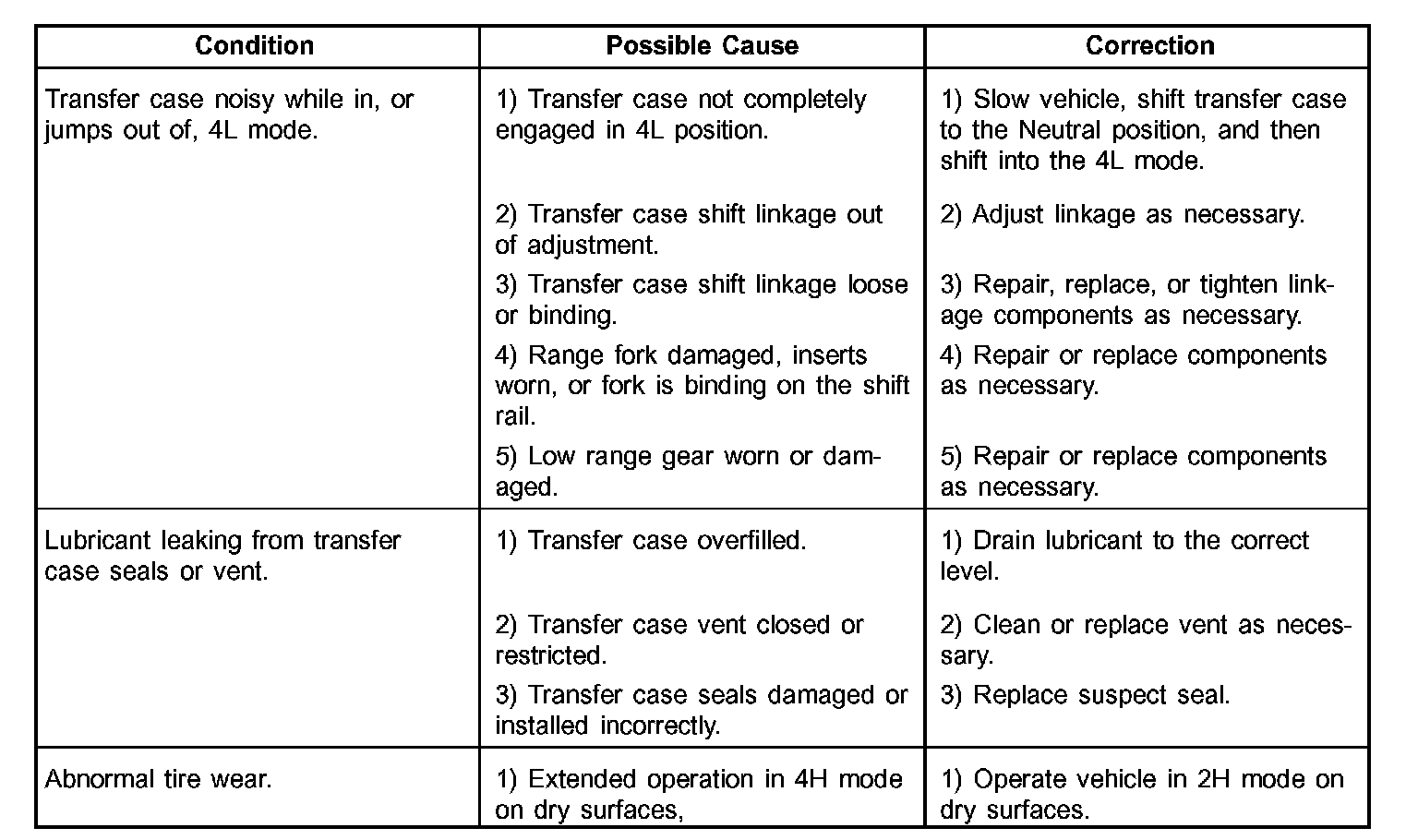 DIAGNOSIS CHART - NV231 TRANSFER CASE (PART 2):