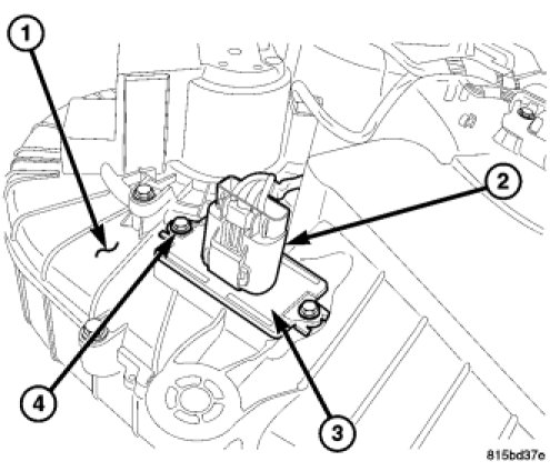 2. Install the two screws (4) that secure the rear blower motor resistor to the rear HVAC housing. Tighten the screws to 2 Nm (17 in. lbs.).