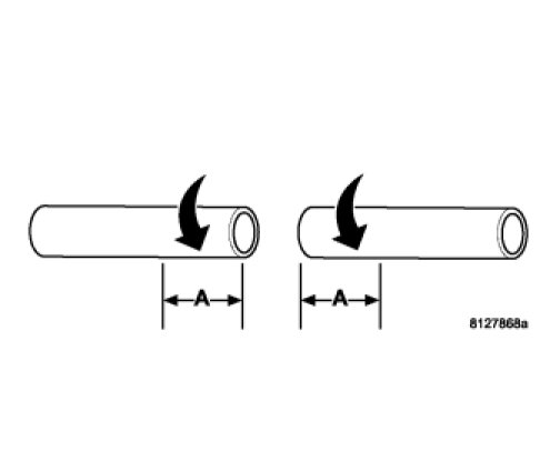 9. Clean the ends of the line(s) a minimum of 28.5 mm (3/4 in) (dimension A) using the Scotch-Bright pad provided with A/C Line Repair Tool Kit 8456-A. Clean the line end(s) with a rotational motion around the line to avoid longitudinal scratches in the line.