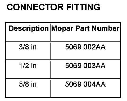 10. Select the proper connector fitting (1) for the size of the underbody line being repaired. Refer to the Connector Fitting chart.