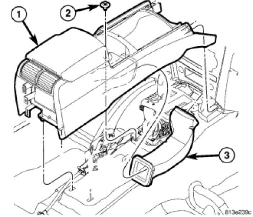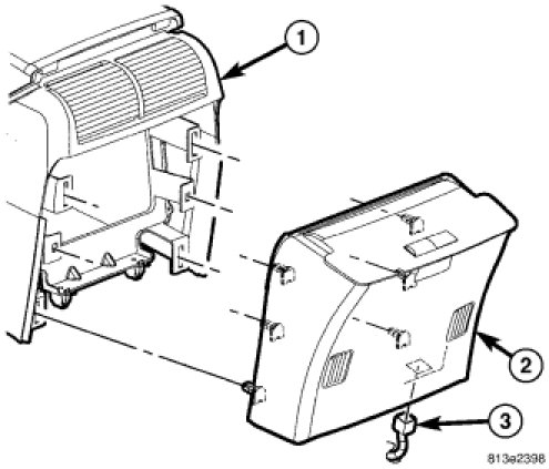 2. Connect the electrical connector (3) and install the rear cover (2) onto the console (1).