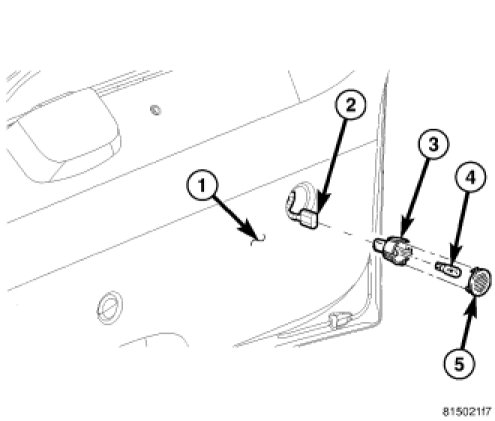 5. Reinstall the lamp into the liftgate trim panel (1).