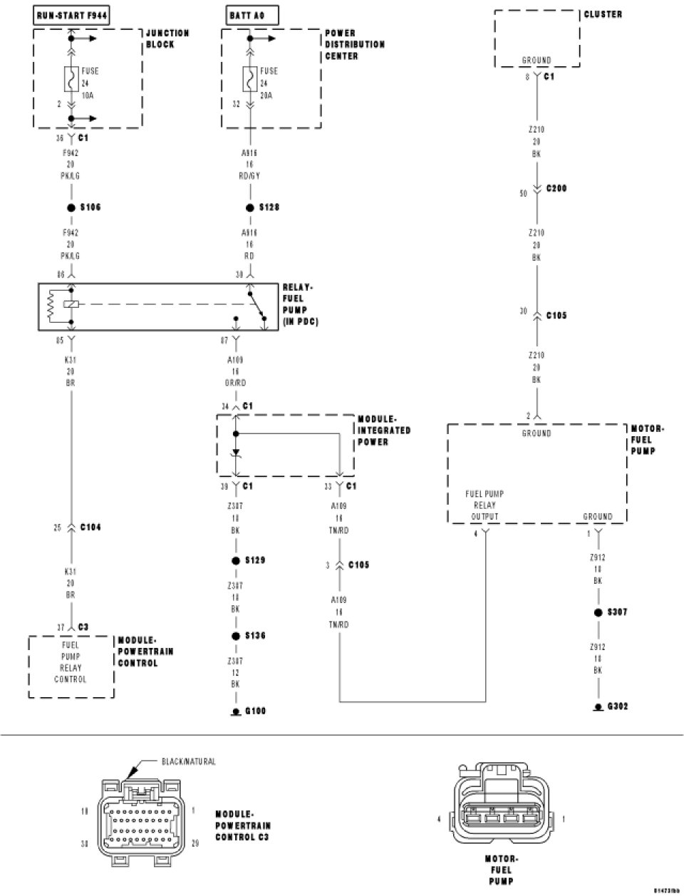 - Repair the open in the (A109) Fuel Pump Relay Output circuit.