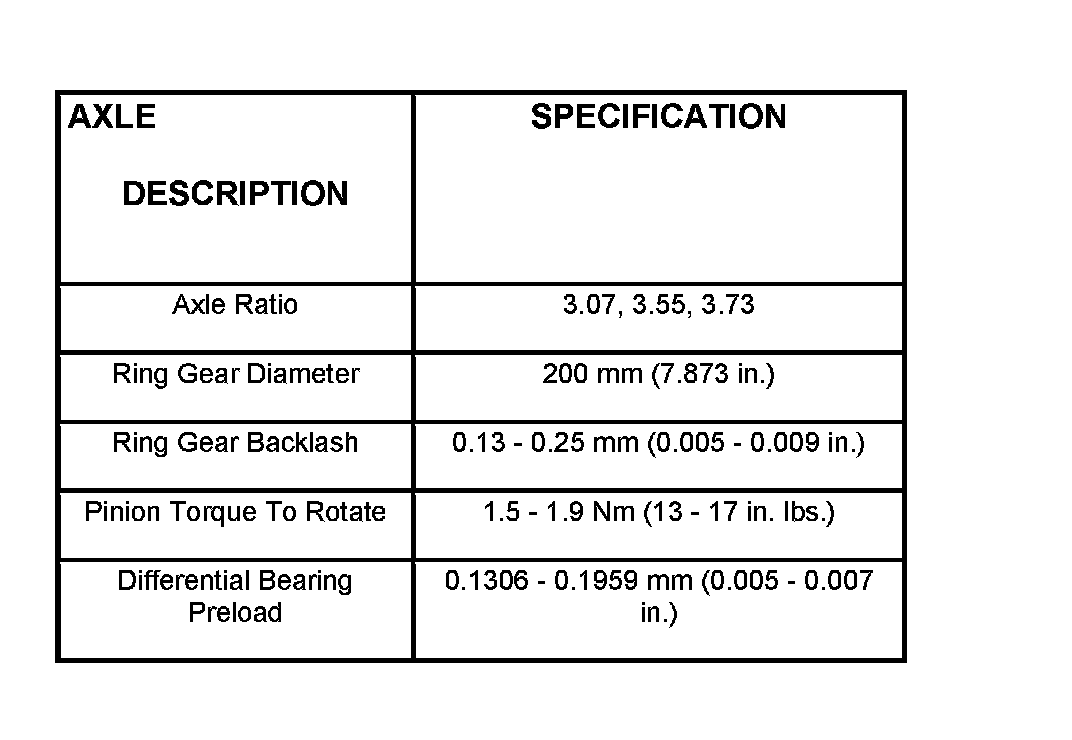 Axle Specifications: