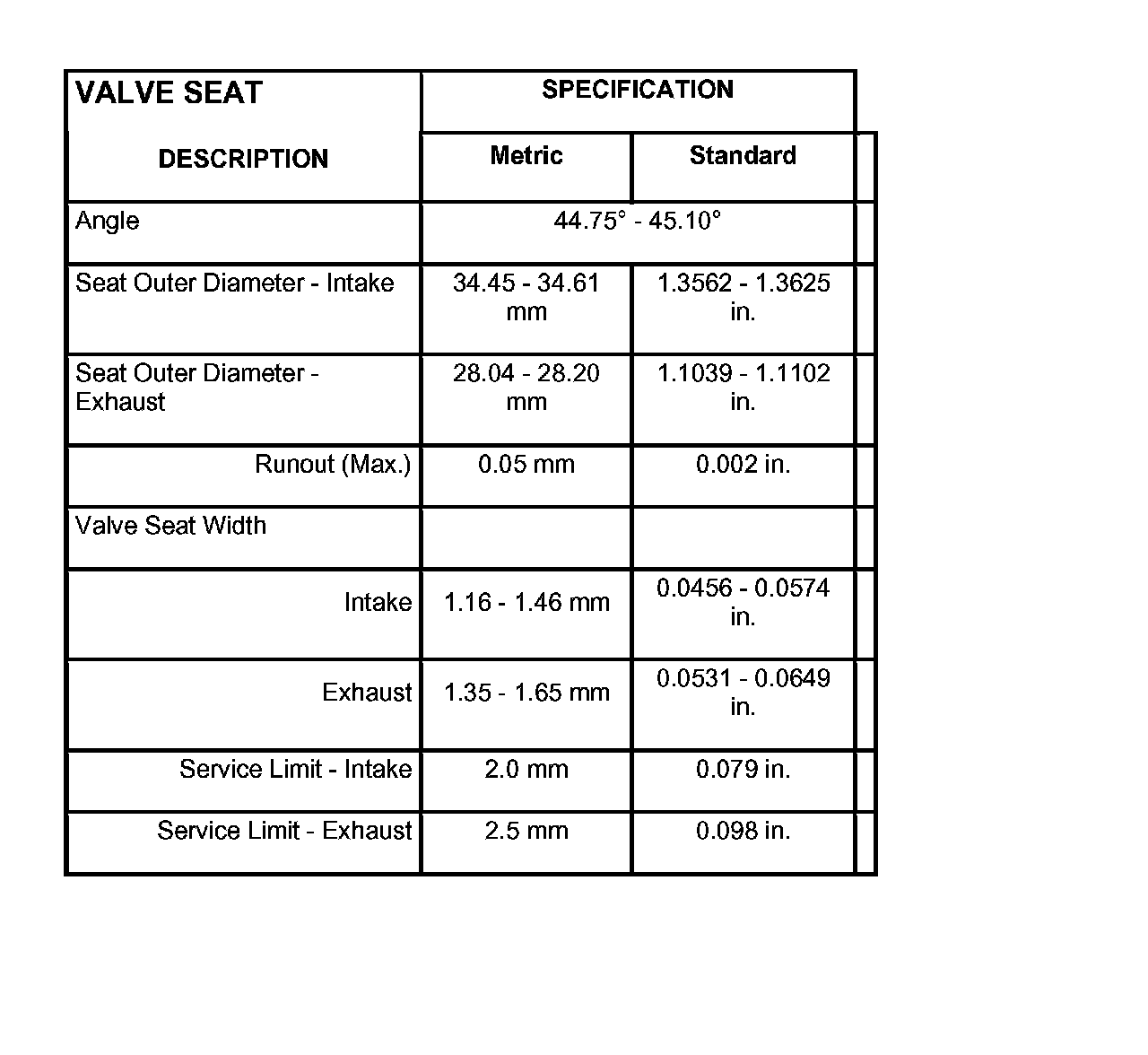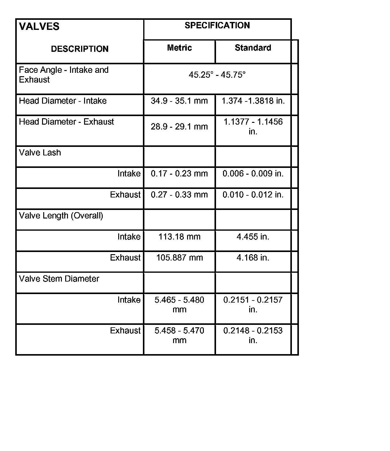 Valve Stem To Guide Clearance: